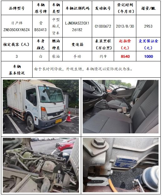 拍品編號(hào)3:日產(chǎn)牌ZN5050XXYA5Z4中型廂式貨車一輛。
