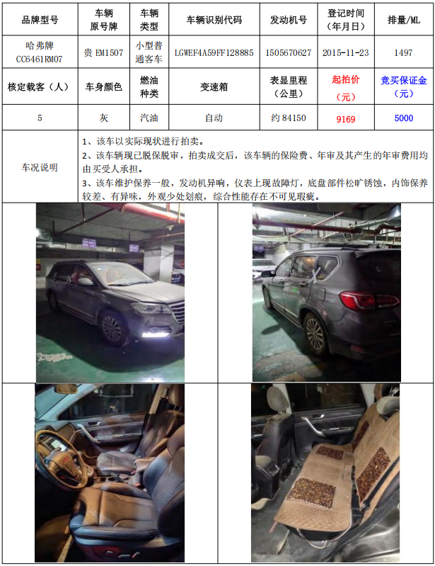 拍品編號6:哈弗牌CC6461RM07小型普通客車1輛(車輛原號牌:貴EM1507)