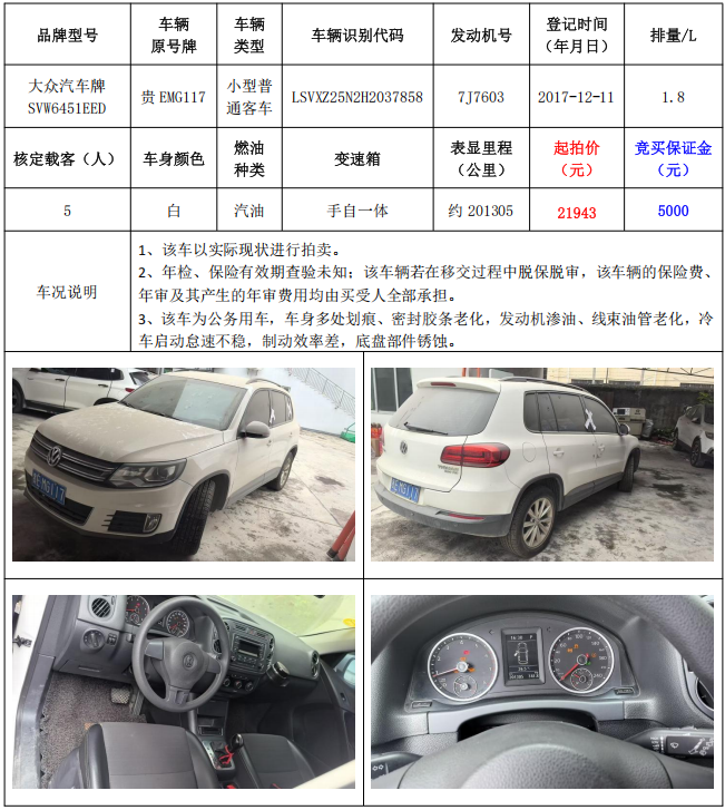 拍品編號8:大眾汽車牌SVW6451EED小型普通客車一輛(車輛原號牌:貴EMG117)